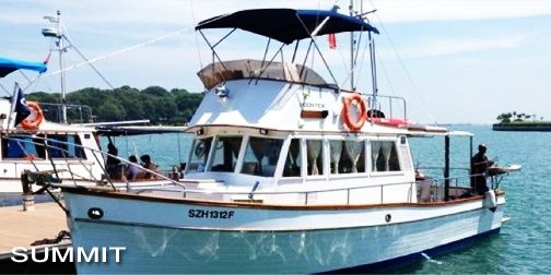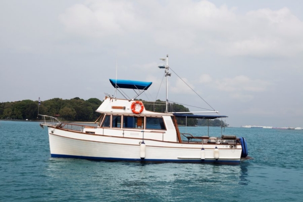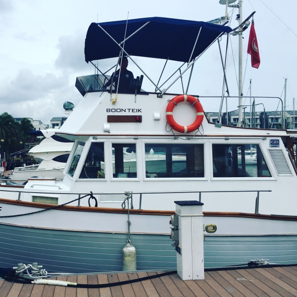 Boon Teik is a classic Grand Banks 36 perfect for a day out at sea for 2 families with kids. It has a good sized fly bridge and a large cockpit good for 6-8 people. The cabin is air-conditioned and has a head with fresh water shower. Charter comes with free use of Kayaks, Floating Mats, Fishing Rods & Baits for charterers to enjoy. There is no corkage for food and drinks brought onboard. Jet skis are available for charter at $200/hour